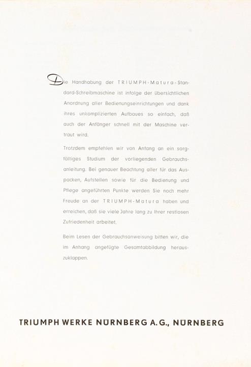 Triumph Matura Standard-Schreibmaschine Gebrauchsanleitung
