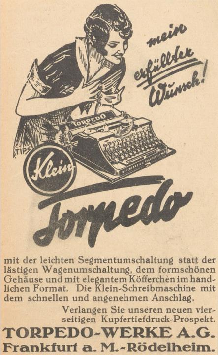 Werbeanzeige für Schreibmaschine Torpedo monochrom