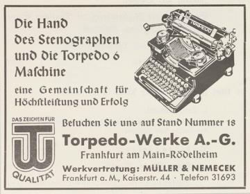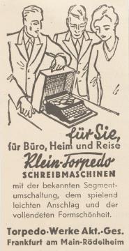 Werbeanzeige für Büromaschinen Torpedo monochrom