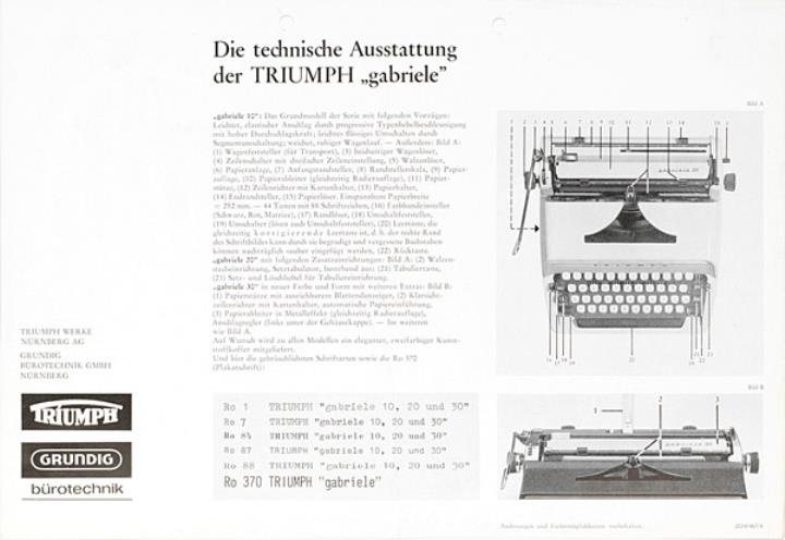 Faltprospekt für Schreibmaschine Triumph Gabriele Nr. 2034/467/4