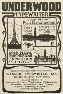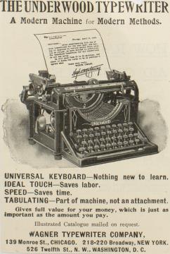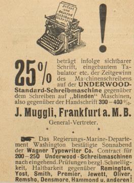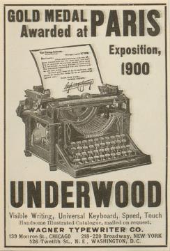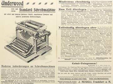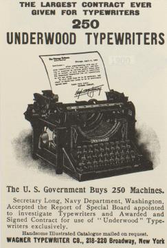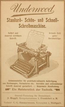 Werbeanzeige für Schreibmaschine Underwood; auf Karton aufgeklebt monochrom