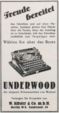 Werbeanzeige für Schreibmaschine Underwood monochrom