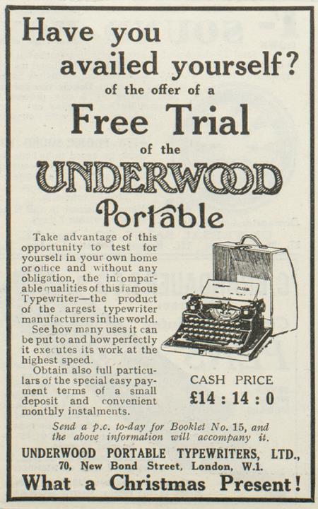 Werbeanzeige für Schreibmaschine Underwood monochrom