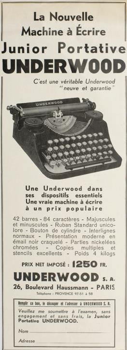La Nouvelle Machine à Écrire Junior Portative Underwood
