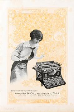 Next to literature on the history of technology, of the typewriter and the office, the Archive holds patent letters, textbooks and instruction manuals as well as historical postcards, letters, photographs and various kinds of advertising (leaflets and brochures, advertising stamps, newspaper ads, posters and signs, promotional gifts).