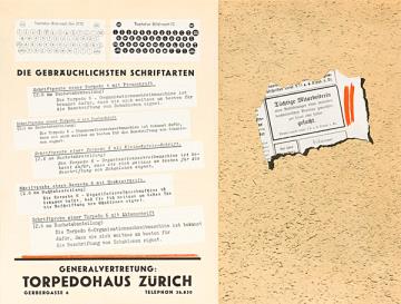 Faltprospekt für Schreibmaschine Torpedo mit eingefügter Antwort/Bestellkarte; im Innenteil großformatige Darstellung der Torpedo Modell 6 Nr. 10028.200.5.27