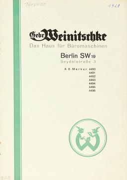 Prospekt für Schreibmaschine Torpedo Nr. 250.5.30 Grafik: Maertens Freiwald