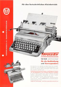 Prospekt für Schreib- und Buchungsmaschine Torpedo 18 KLB Für den fortschrittlichen Kleinbetrieb: Nr. 10-2.60