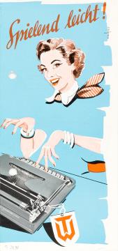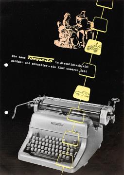 Faltprospekt für Schreibmaschine Torpedo mit Einziehautomat Nr. d.30 3.54 Grafik: Wekerle