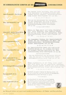 Die gebräuchlichsten Schriften auf den Torpedo Schreibmaschinen