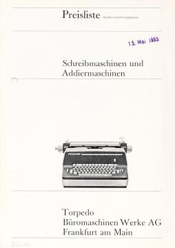 Preisliste für Schreibmaschinen und Rechenmaschinen Torpedo mit Datumstempel versehen