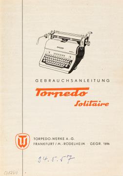 Bedienungsanleitung für Schreibmaschine Torpedo Solitaire Nr. d109-12-155 Datum handschriftlich auf Anleitung vermerkt