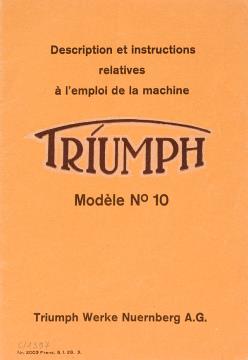 Description et instructions relatives à l'emploi de la machine Triumph Modèle N° 10
