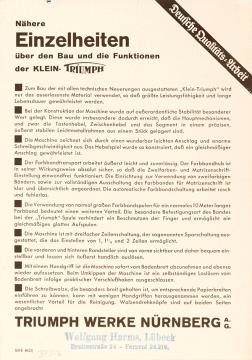 Prospekt für Schreibmaschine Triumph Triumph-Schreibmaschinen in vollendeter Form Nr. 1001/749n mit maschinenschriftlichem Vermerk
