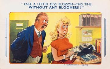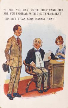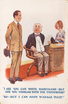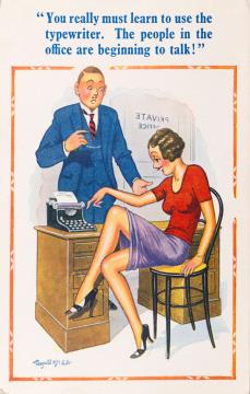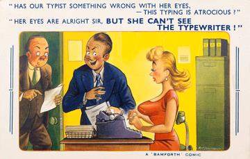 Illustrierte Postkarte; Grafik, polychrom Bamforth Comic Series Nr. 1668, Grafik: Fitzpatrick Rückseite: Büroszene; Vorgesetzter und Mitarbeiter im Gespräch, Sekretärin mit Schreibmaschine Vorderseite nicht beschrieben