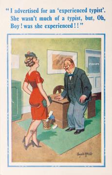 Illustrierte Postkarte; Grafik, polychrom; Comedy Series Nr. 2249 Rückseite: Büroszene; Vorgesetzter und Sekretärin mit Schreibmaschine Vorderseite nicht beschrieben