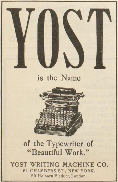 Werbeanzeige für Schreibmaschine Yost 4 monochrom