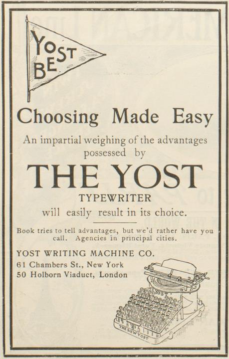Werbeanzeige für Schreibmaschine Yost monochrom