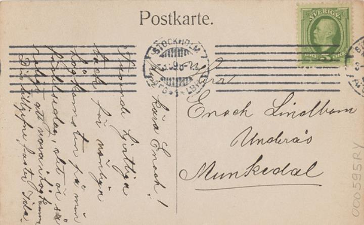 Werbepostkarte; Fotografie, monochrom Rückseite: Frau mit herausnehmbarem Tastatur-/Typenhebelsegment der Schreibmaschine Mercedes Vorderseite: beschrieben, adressiert; Briefmarke Sverige 5 Öre; Poststempel Stockholm