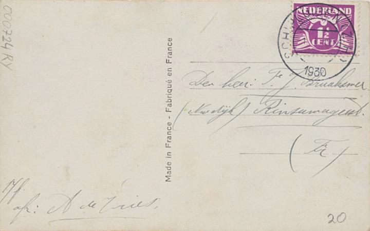 Illustrierte Postkarte; Fotografie, koloriert; Serie Leo 915 Rückseite: Frau mit Schreibmaschine, Blick zum Betrachter Vorderseite: beschrieben und adressiert; Briefmarke Nederland 1 1/2 Cent; Poststempel Schipluiden/1 I 1912
