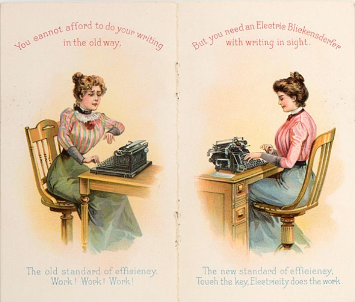 Next to literature on the history of technology, of the typewriter and the office, the Archive holds patent letters, textbooks and instruction manuals as well as historical postcards, letters, photographs and various kinds of advertising (leaflets and brochures, advertising stamps, newspaper ads, posters and signs, promotional gifts).