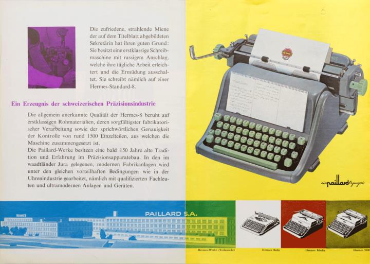 Faltprospekt für Schreibmaschine Hermes 8 Nr. 806B ICL All.