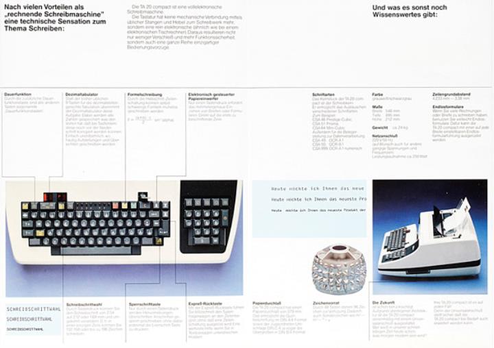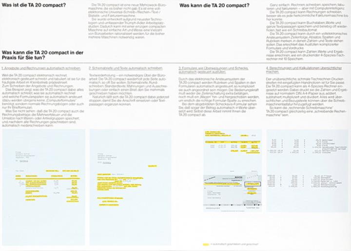 Faltprospekt für Computerschreibmaschine Triumph-Adler TA 20 compact Nr. 3145/0178/40/6a