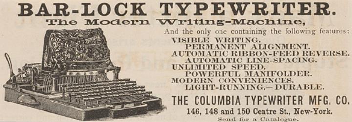 Werbeanzeige für Schreibmaschine Bar-Lock monochrom, drei Exemplare