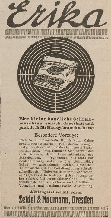 Zeitungsblatt (Berliner Illustrirte Zeitung) mit Werbeanzeige für Schreibmaschine Erika monochrom