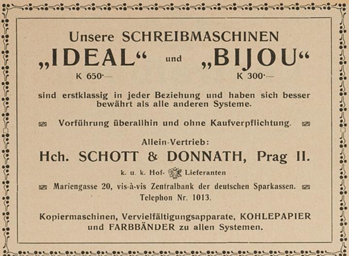Werbeanzeige für Schreibmaschine Ideal und Bijou (Erika) monochrom
