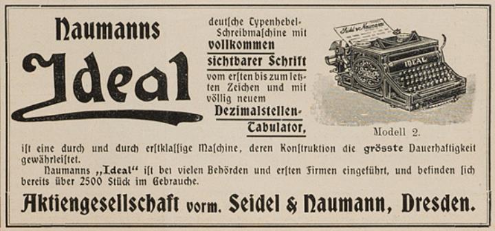 Werbeanzeige für Schreibmaschine Ideal; auf Papier geklebt monochrom, zwei Exemplare