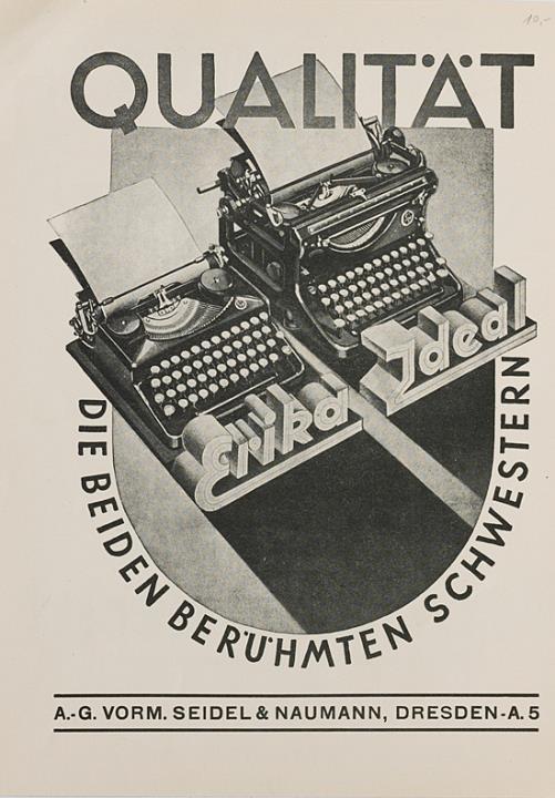 Werbeanzeige für Schreibmaschine Ideal und Erika monochrom