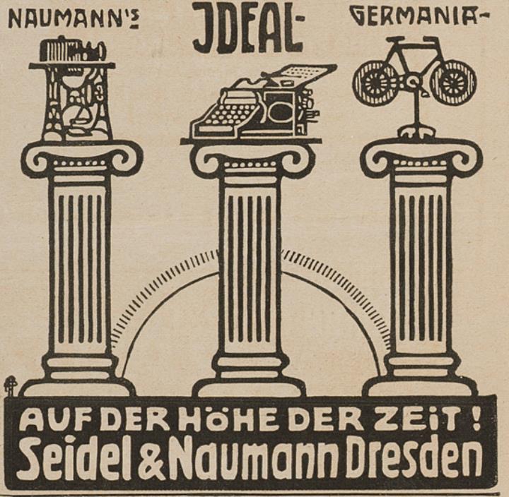 Zeitungsblatt (Berliner Illustrirte Zeitung) mit Werbeanzeige des Schreibmaschinenherstellers Seidel & Naumann monochrom
