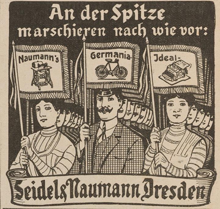 Zeitungsblatt (Berliner Illustrirte Zeitung) mit Werbeanzeige des Schreibmaschinenherstellers Seidel & Naumann monochrom