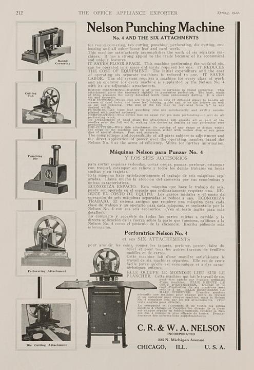 Zeitschriftenblatt mit Werbeanzeige für Lochmaschine Nelson 4 monochrom