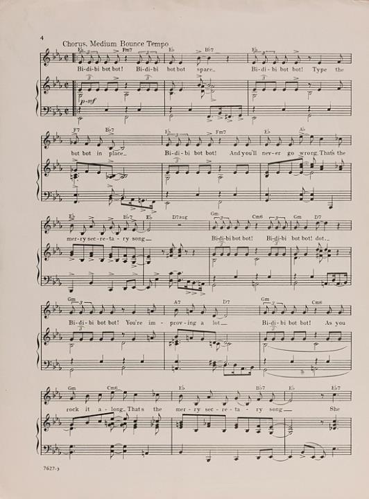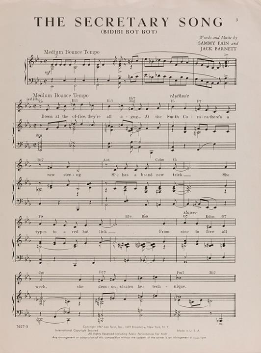 Partitur für Musikstück "The Secretary Song" Text und Musik: Sammy Fain, Jack Barnett