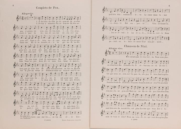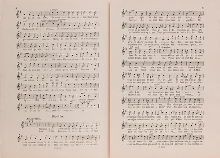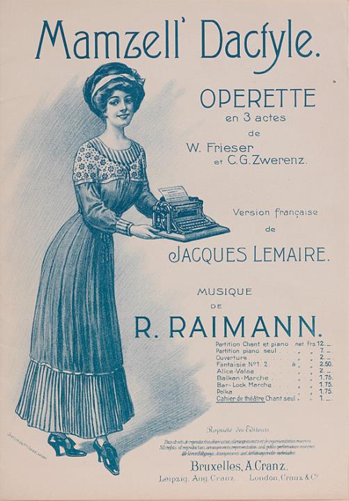 Partitur für zwei Musikstücke der Operette Mamzell' Dactyle (Tippmamsell): "Cahier de théâtre", "Chant seul" Musik: Rudolf Raimann; Text: Jacques Lemaire