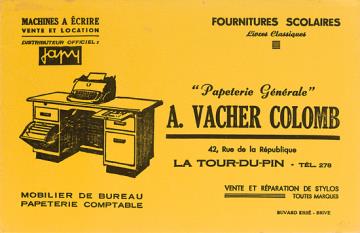 Löschpapier mit Werbedruck der Bürowarenhandlung A. Vacher Colomb, La Tour-Du-Pin