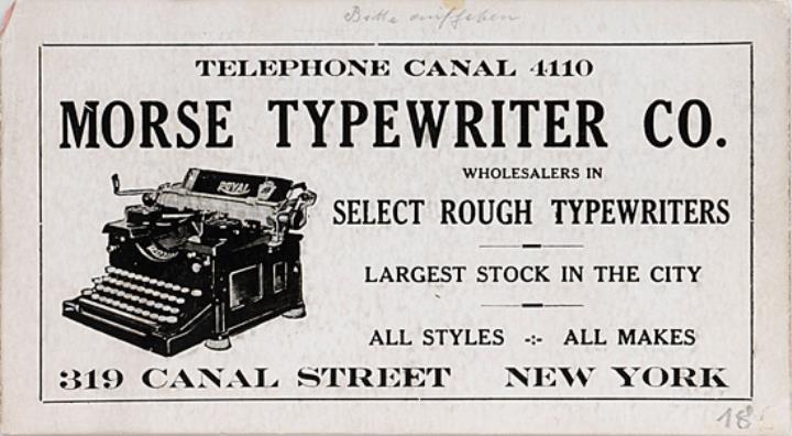 Löschpapier mit Werbedruck für Schreibmaschine Royal und Schreibmaschinenhandlung Morse Typewriter Co., New York
