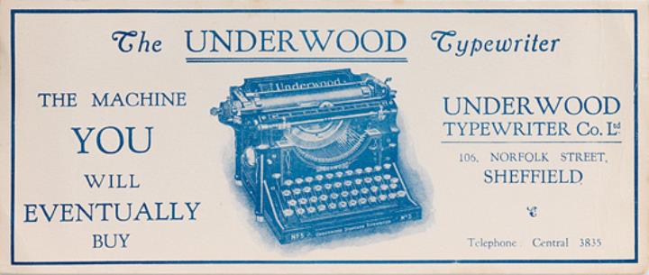 Löschpapier mit Werbedruck für Schreibmaschine Underwood