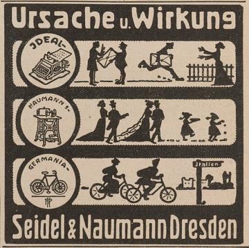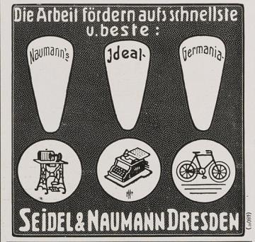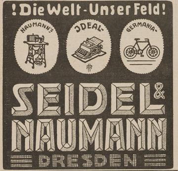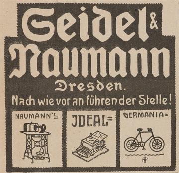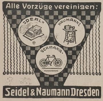 Zeitungsblatt mit Werbeanzeige des Schreibmaschinenherstellers Seidel & Naumann monochrom
