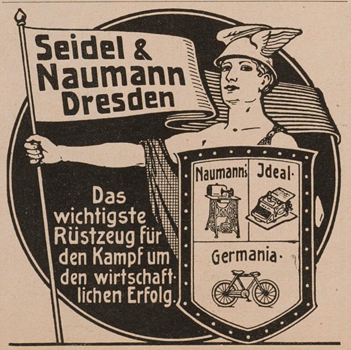 Zeitungsblatt (Fliegende Blätter) mit Werbeanzeige des Schreibmaschinenherstellers Seidel & Naumann monochrom