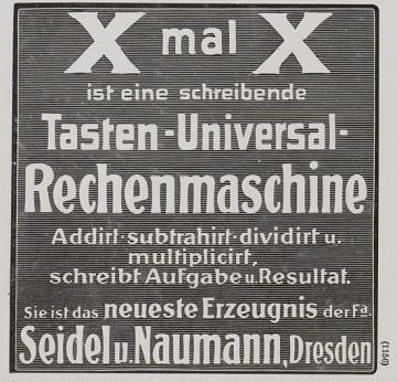 X mal X ist eine schreibende Tasten-Universal-Rechenmaschine