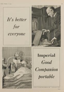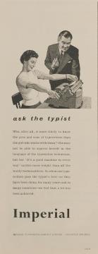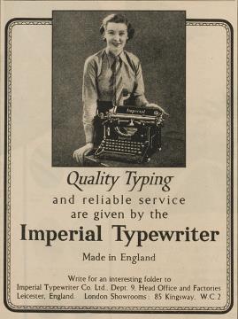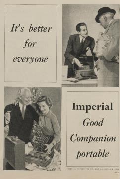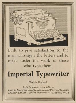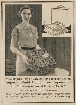 Zeitschriftenblatt (Punch) mit Werbeanzeige für Schreibmaschine Imperial Good Companion monochrom
