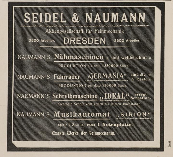 Seidel & Naumann [...] Nähmaschinen Fahrräder Schreibmaschine Musikautomat