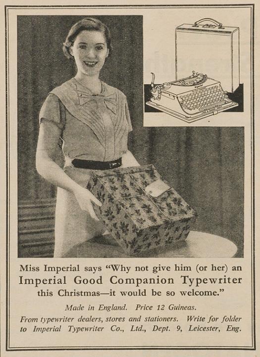 Zeitungsblatt (Punch) mit Werbeanzeige für Schreibmaschine Imperial Good Companion monochrom