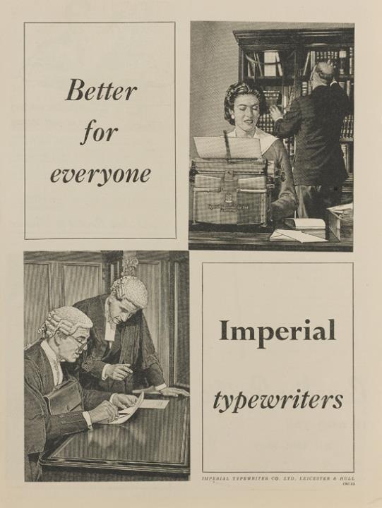 Zeitschriftenblatt (Punch) mit Werbeanzeige für Schreibmaschine Imperial monochrom