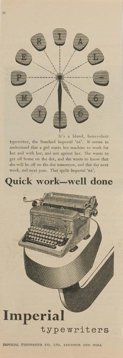 Werbeanzeige für Schreibmaschine Imperial 66 monochrom