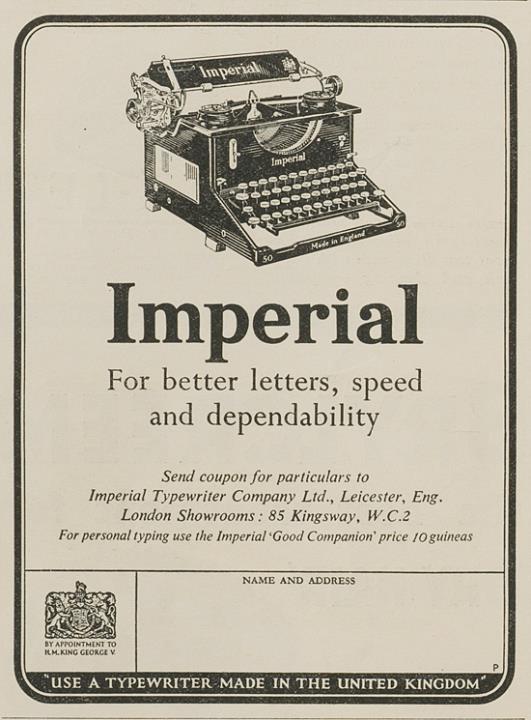 Zeitungsblatt (Punch) mit Werbeanzeige für Schreibmaschine Imperial monochrom