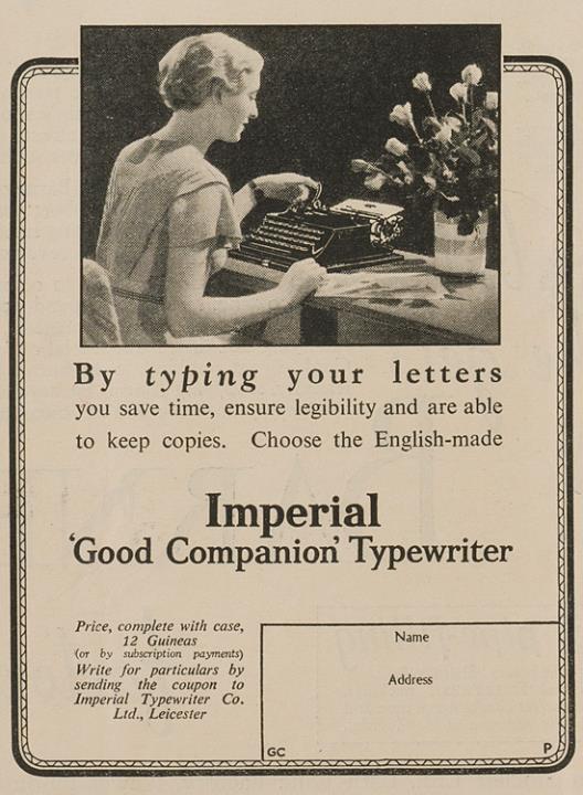 Zeitungsblatt (Punch) mit Werbeanzeige für Schreibmaschine Imperial Good Companion monochrom